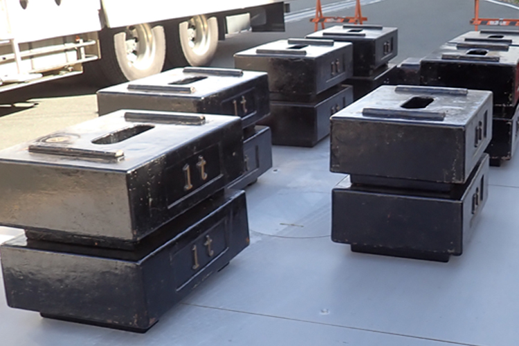 | 2級基準分銅 | 1t × 14 No.1(1~14) 500kg × 2 No.2 20kg × 25 No.8 10kg, 5kg, 2kg, 2kg, 1kg No.8 |